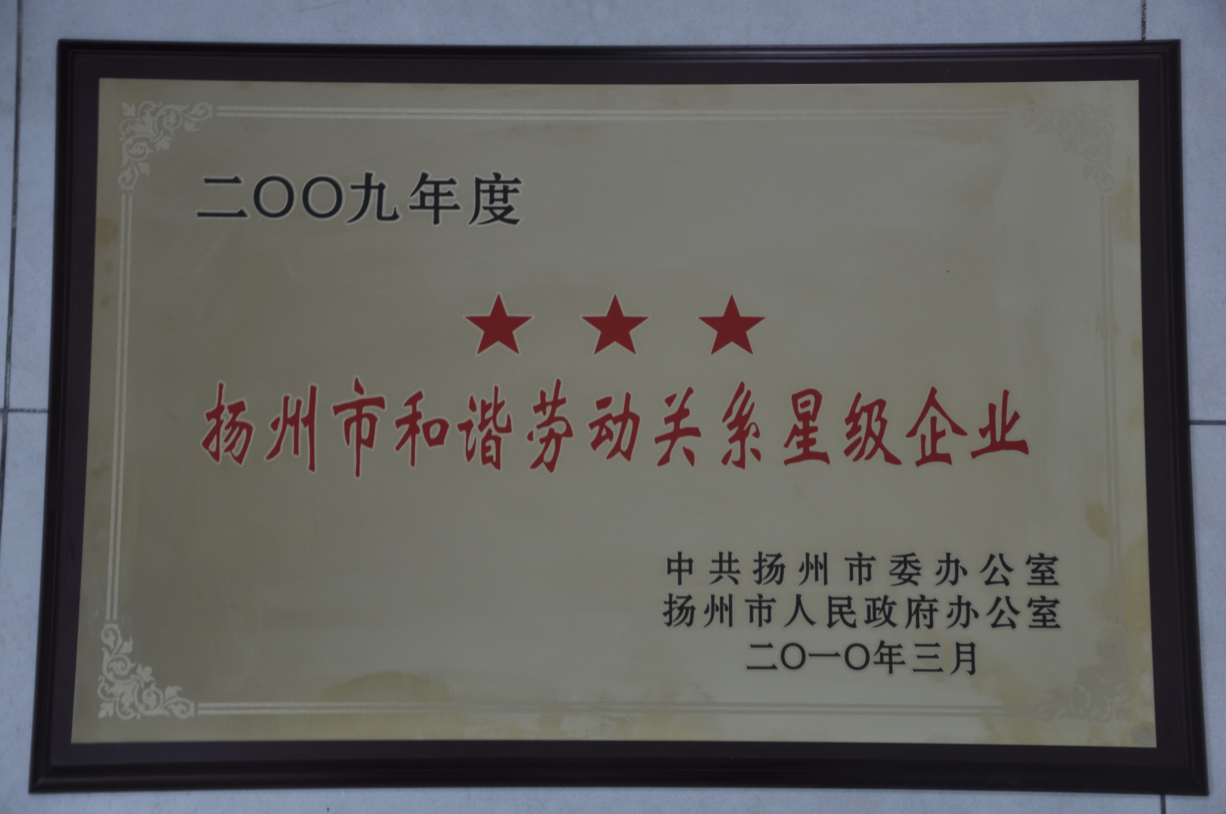 > 集團公司獲2009年揚州市和諧勞動關系“三星級企業(yè)”殊榮