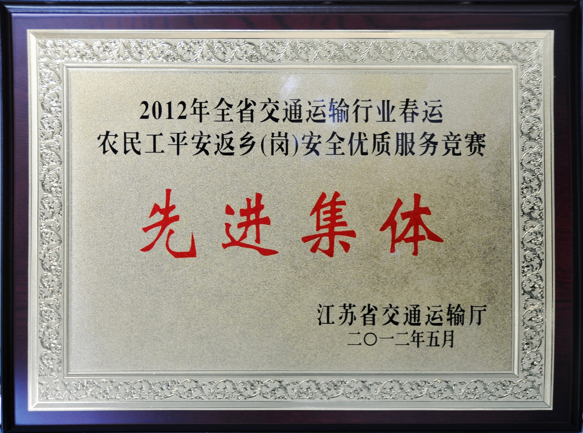 2012年全省交通運輸行業(yè)春運農(nóng)民工平安返鄉(xiāng)(崗)安全優(yōu)質(zhì)服務(wù)競賽先進集體