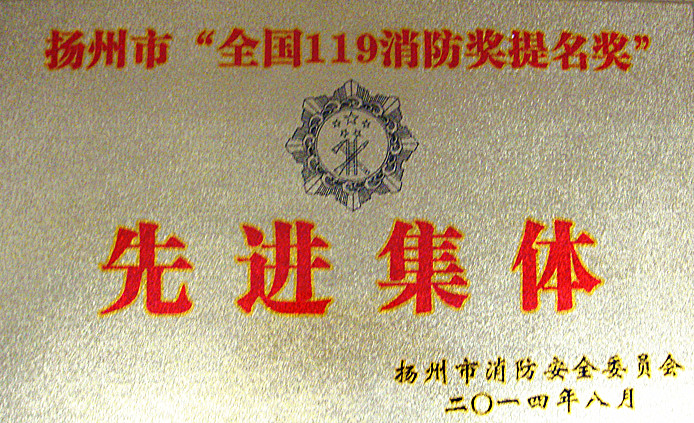 我司榮獲揚(yáng)州市首屆“全國(guó)119消防獎(jiǎng)提名獎(jiǎng)”