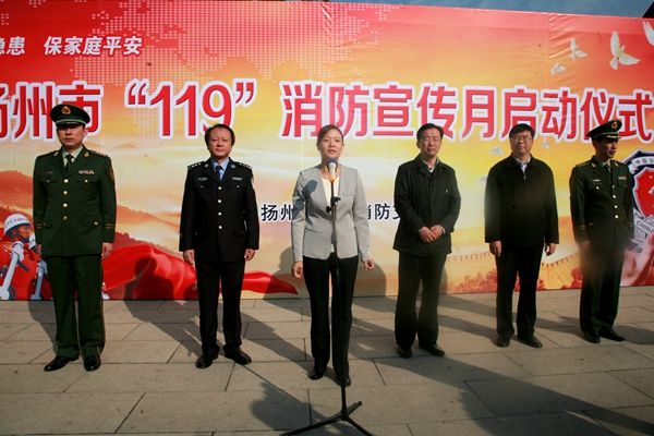 11月5日上午,揚(yáng)州市公安局消防支隊(duì)在瘦西湖風(fēng)景區(qū)舉行“119”消防宣傳月啟動(dòng)儀式。揚(yáng)州市副市長(zhǎng)張寶娟、市政府副秘書(shū)長(zhǎng)王玉軍、市公安局副局長(zhǎng)劉毅、消防支隊(duì)主要負(fù)責(zé)人和瘦西湖消防志愿者、揚(yáng)汽集團(tuán)以及全市消防重點(diǎn)單位負(fù)責(zé)人、學(xué)生代表200余人參加了活動(dòng)。