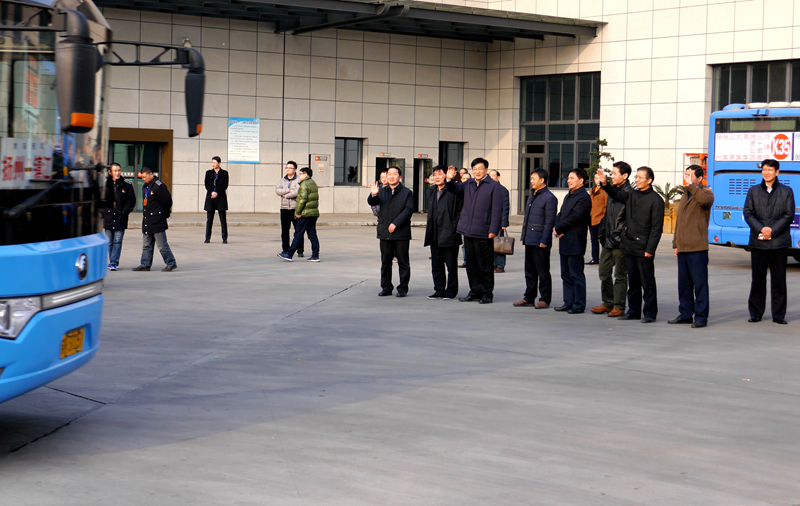 市交通運(yùn)輸局副局長(zhǎng)晏明、集團(tuán)公司總經(jīng)理、黨委書記吳忠俊分別對(duì)春運(yùn)工作情況進(jìn)行了匯報(bào)。丁市長(zhǎng)強(qiáng)調(diào)要繼續(xù)強(qiáng)化安全責(zé)任落實(shí),不斷提升服務(wù)質(zhì)量,確保廣大旅客走得及時(shí)、走得舒心、走得安全。下午4點(diǎn),揚(yáng)州發(fā)往四戶、南京、鎮(zhèn)江、儀征、淮安方向的5輛末班車和數(shù)輛定制客運(yùn)班車,在車場(chǎng)上一字排開(kāi),丁市長(zhǎng)登上班車,為即將返鄉(xiāng)的旅客送上新春祝福,并與駕駛員親切握手,送上慰問(wèn)品,叮囑駕駛員沿途一定要注意行車安全,確保將旅客平安送達(dá)。