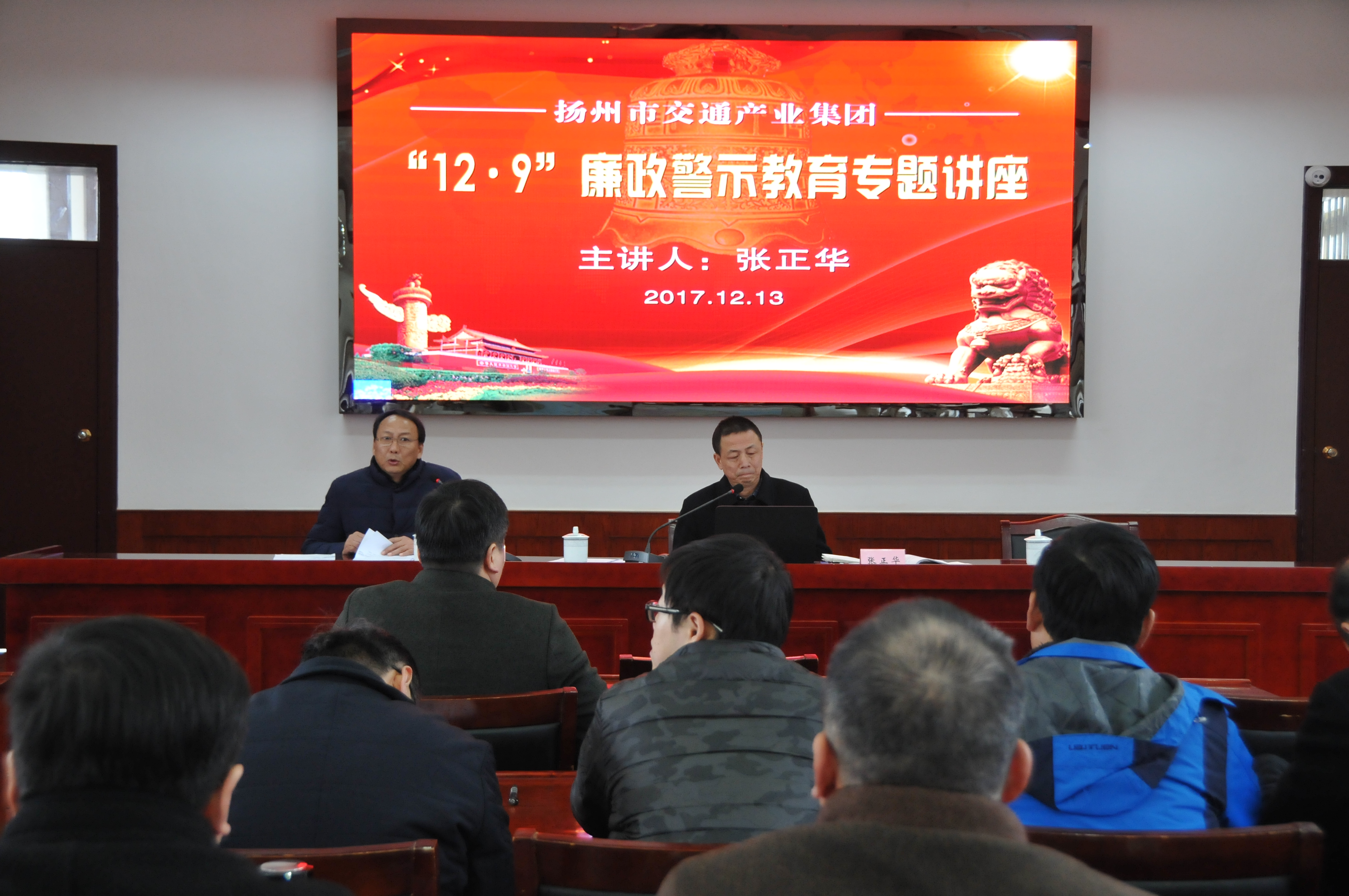 12月13日下午,市交通產(chǎn)業(yè)集團(tuán)在市級(jí)機(jī)關(guān)工委黨校舉辦“12.9”廉政警示教育專題講座;顒(dòng)由交通產(chǎn)業(yè)集團(tuán)黨委副書(shū)記王寧生主持,邀請(qǐng)市紀(jì)委第十派駐紀(jì)檢組組長(zhǎng)張正華主講,系統(tǒng)內(nèi)黨員干部近百人現(xiàn)場(chǎng)聆聽(tīng)講座。揚(yáng)汽集團(tuán)總經(jīng)理、黨委書(shū)記曹遠(yuǎn)志等班子成員及各部門、單位黨政負(fù)責(zé)人30余人參加活動(dòng)。