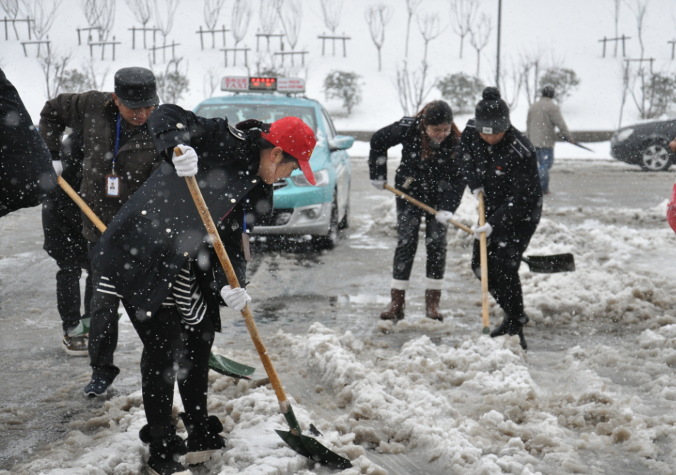 為了確保旅客出行安全,揚(yáng)州站對現(xiàn)場崗位進(jìn)行合理分工,在關(guān)鍵崗位增設(shè)人員,確保旅客乘車安全。并在第一時間組織人員清除發(fā)車平臺、坡道、路口的積雪,工作人員頂著雪花一邊努力鏟雪,一邊為易滑地點(diǎn)鋪設(shè)草墊,力保車輛進(jìn)出通道的暢通與安全。