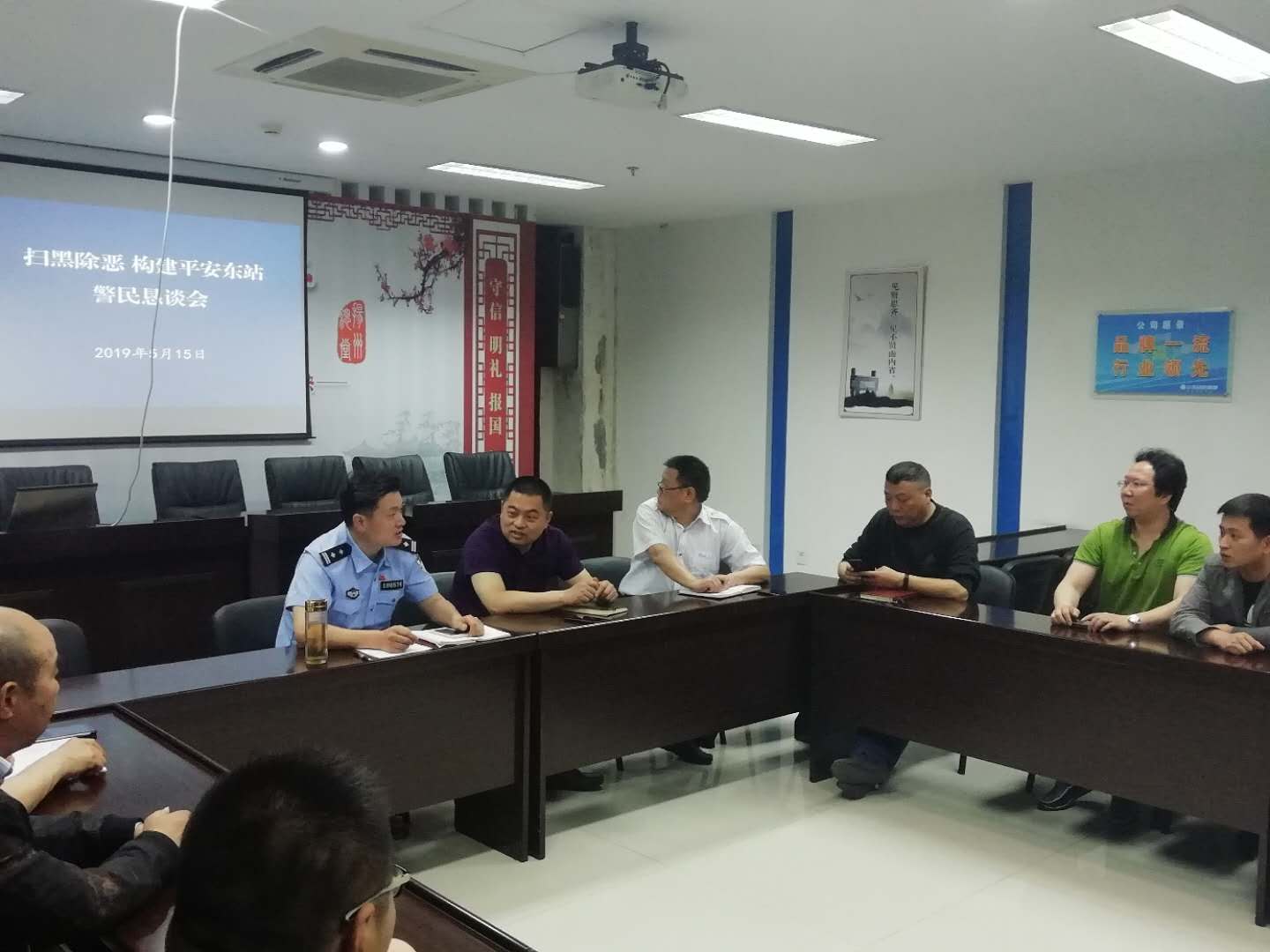 2019年5月15日上午9點30分,東站召開掃黑除惡專題工作動員大會,東站支部書記、管理人員、班組長和超市及賓館等商戶參加了會議,會議由揚州市公安局公交分局東站派出所所長李方民主持。