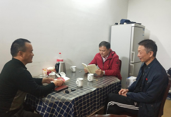 郭宏祥是支部一名老黨員,身患疾病在家休養(yǎng),主題教育開始后,該黨員多次因無法參加組織活動(dòng)而向支部表達(dá)歉意。為此,旅游出租支部書記趙磊主動(dòng)與該同志結(jié)對,為他“送黨課、送教材”。11月3日,旅游出租支部一行三人攜帶慰問品和主題教育相關(guān)教材來到郭宏祥家,在送去組織親切慰問的同時(shí),向其發(fā)放了《習(xí)近平關(guān)于“不忘初心、牢記使命”重要論述選編》、《習(xí)近平新時(shí)代中國特色社會(huì)主義思想學(xué)習(xí)綱要》、主題教育應(yīng)知應(yīng)會(huì)30條口袋讀本以及學(xué)習(xí)筆記本。
