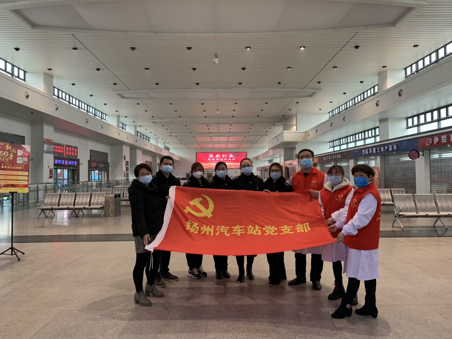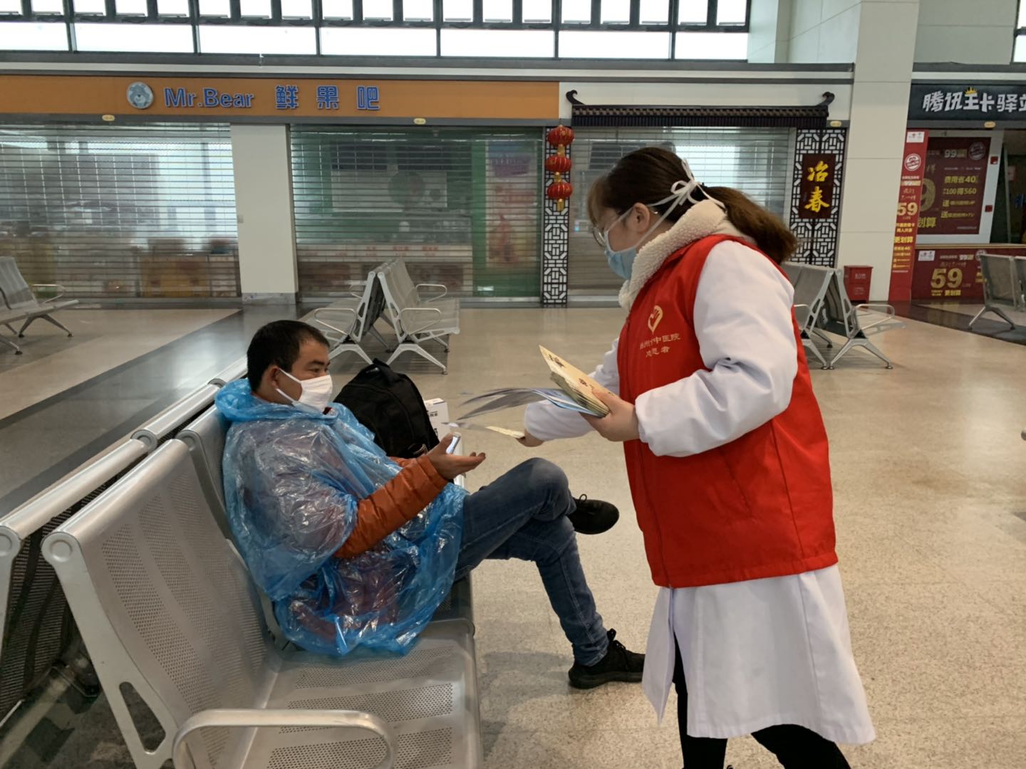2月25日揚(yáng)州站復(fù)工復(fù)產(chǎn)的第二天,揚(yáng)州市中醫(yī)院抗“疫”小分隊(duì)為揚(yáng)州汽車站里的旅客們和堅守在一線崗位的職工送來了抗疫藥品和義診服務(wù)。