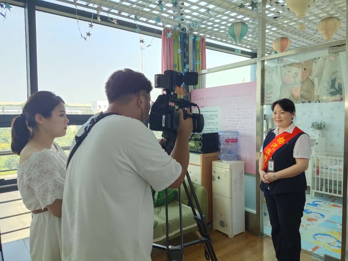 此次采訪主要以文明驛站——愛心母嬰室為主題,采訪過程中揚州站負責母嬰室服務(wù)的班長尹海霞對母嬰室的功能及服務(wù)進行了詳細的解說。