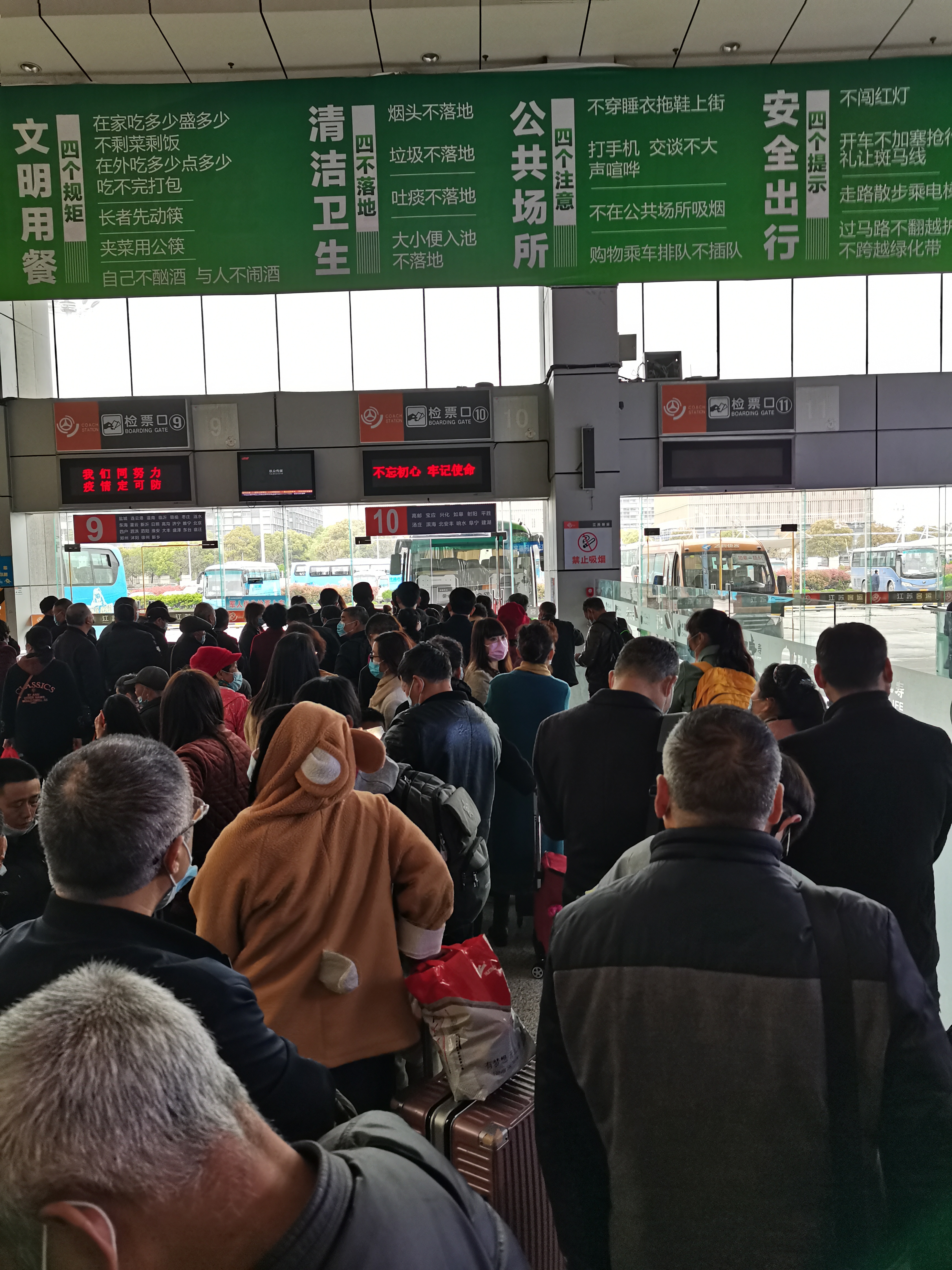 為保障此次節(jié)假日運(yùn)輸,揚(yáng)汽集團(tuán)節(jié)前開展了安全生產(chǎn)大檢查,對(duì)場(chǎng)站及車輛進(jìn)行全面檢查,確保硬件設(shè)施安全有保障,針對(duì)可能出現(xiàn)的線路高峰,進(jìn)行車輛、車次的合理安排,并根據(jù)客流情況適時(shí)增加班次密度。在做好疫情防控的前提下,車站組織志愿者進(jìn)行現(xiàn)場(chǎng)服務(wù),在安檢口引導(dǎo)旅客進(jìn)行安全檢查,在發(fā)車平臺(tái)對(duì)車輛現(xiàn)場(chǎng)指揮,在發(fā)車門號(hào)的志愿者舉著引導(dǎo)標(biāo)志,引導(dǎo)旅客乘車,營造安全、溫馨、文明有序的乘車環(huán)境,保證運(yùn)輸任務(wù)圓滿完成。
