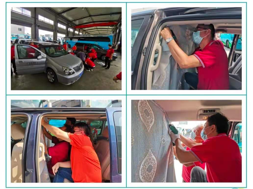 接到緊急指令后,修理廠立即召開會議,并迅速組建項目改造攻堅小組,統(tǒng)籌協(xié)調(diào),明確責(zé)任分工,細(xì)化工作落實,明確改造進(jìn)度,進(jìn)行防疫接駁轉(zhuǎn)運車的改造,每輛車都加裝分隔簾,將駕駛艙與接駁轉(zhuǎn)運艙隔離。在承接轉(zhuǎn)運的工作人員與乘客間之間,拉起一層保護(hù)網(wǎng),有效切斷轉(zhuǎn)運過程中工作人員與乘客間的病毒傳播途徑,更好的保護(hù)人員的安全。