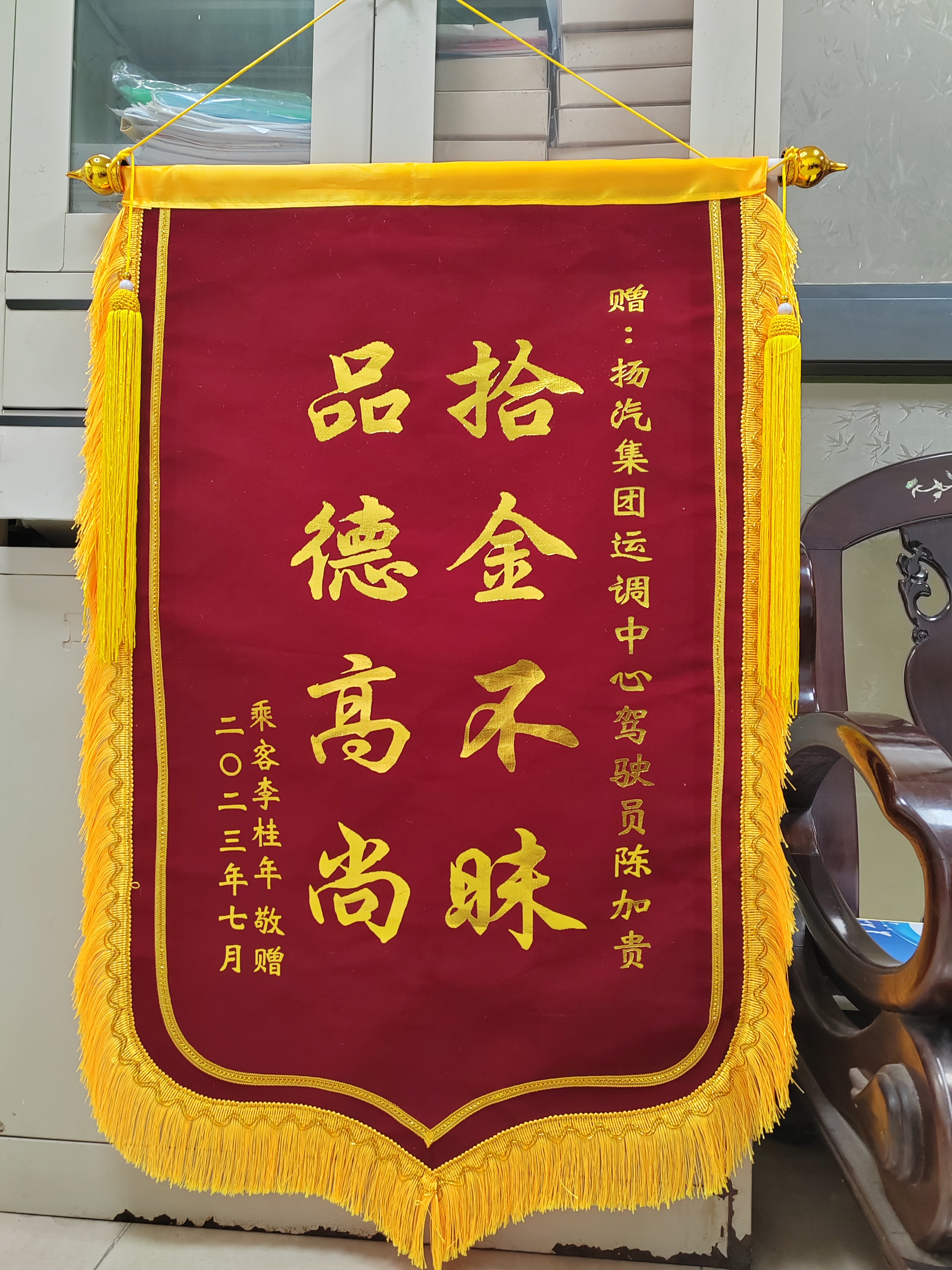 近日,江都汽車站收到了外地寄來的一面印有“拾金不昧 品德高尚”的錦旗交到了分公司相關(guān)負責人的手上,以此來表達對駕駛員陳加貴師傅拾金不昧行為的感謝。